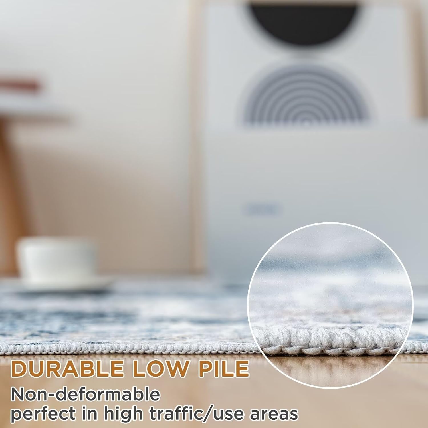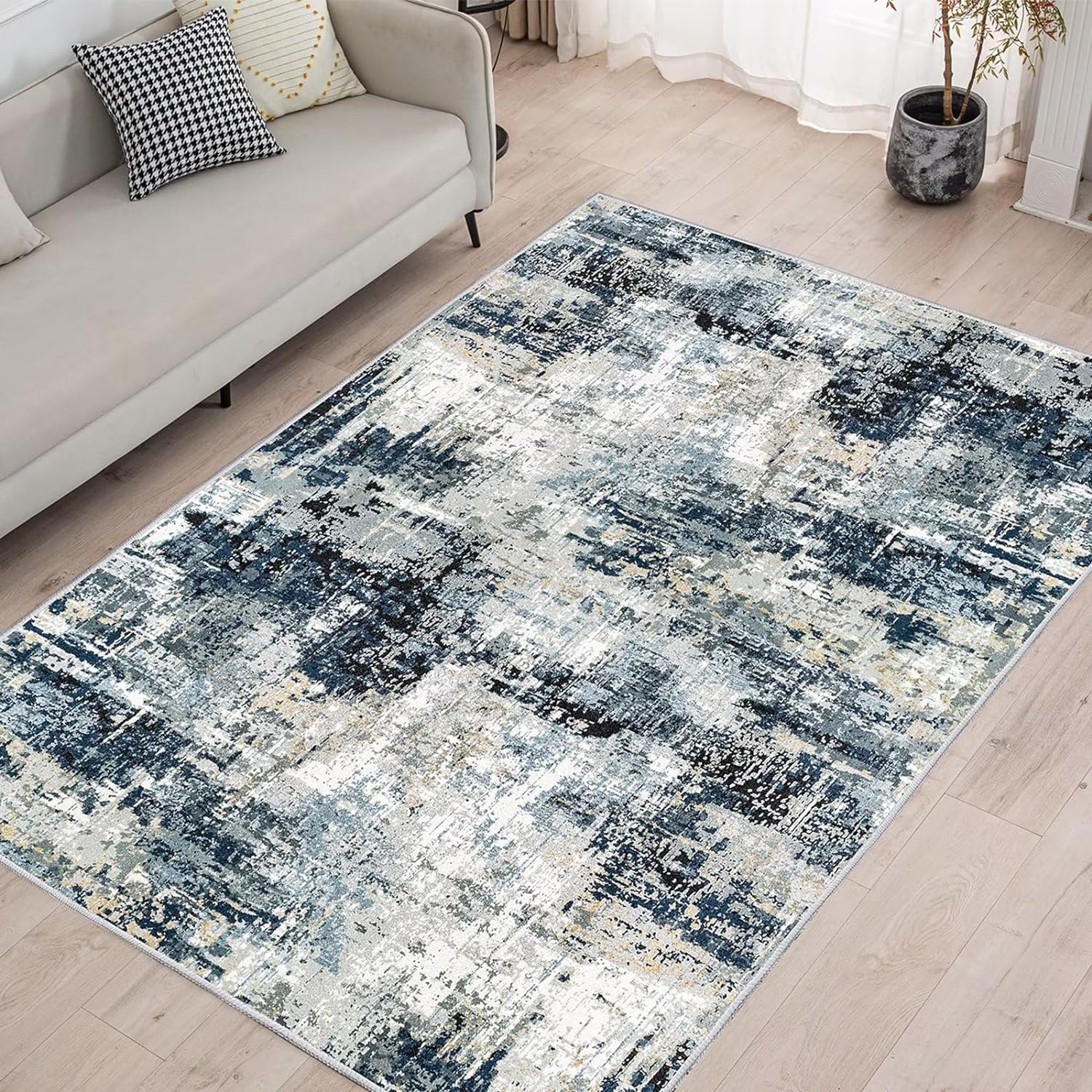 Blue Washable Abstract Area Rug - Contemporary Style for Living Room