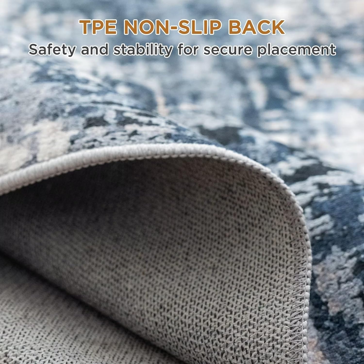 • Blue Washable Abstract Area Rug - Contemporary Style for Living Room