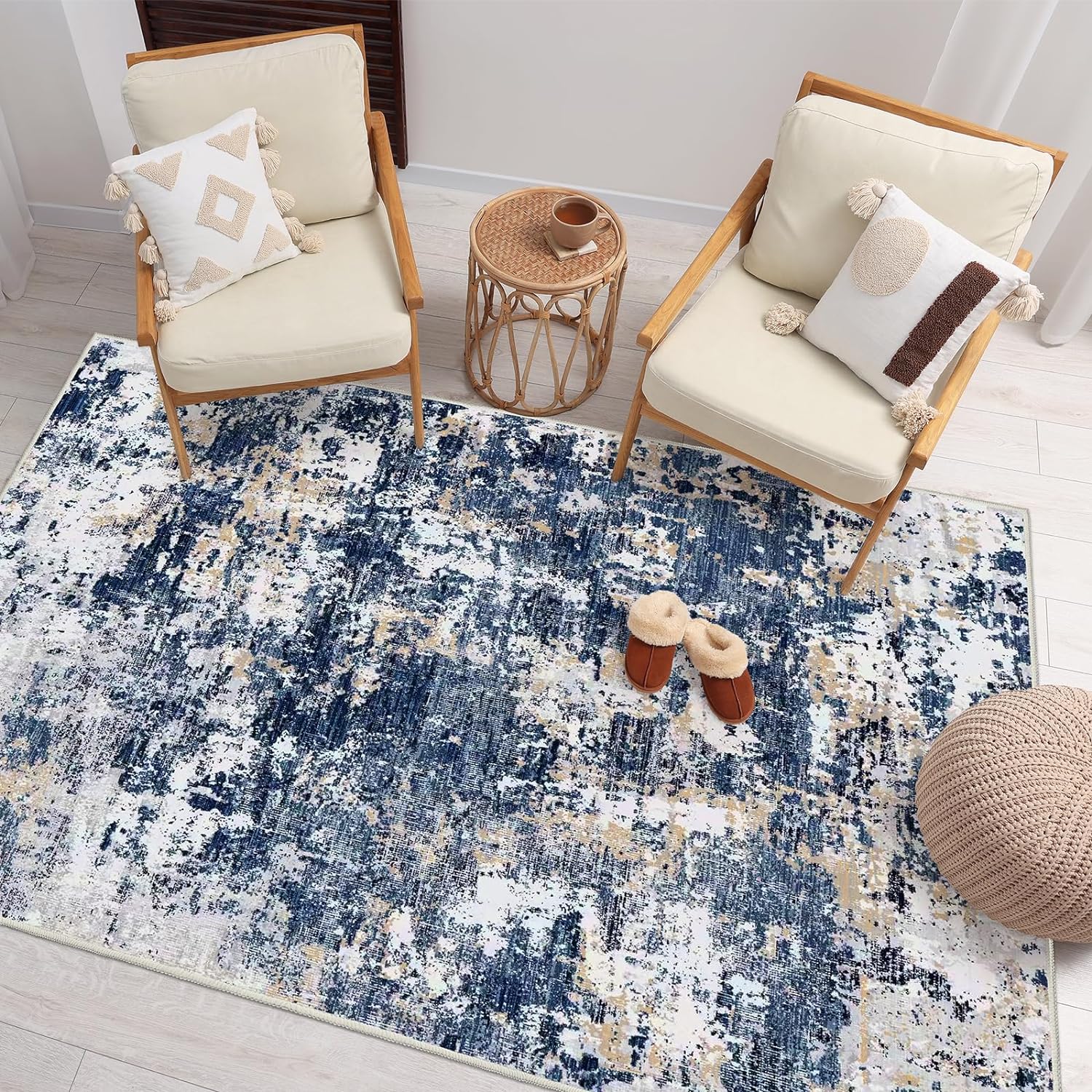 - Ultra Soft & Smooth – The washable rug features an ultra-soft velvet surface. When you step on, you can feel it's velvety soft and rolled out smooth on the flat area rugs for living room without crinkles or bends.