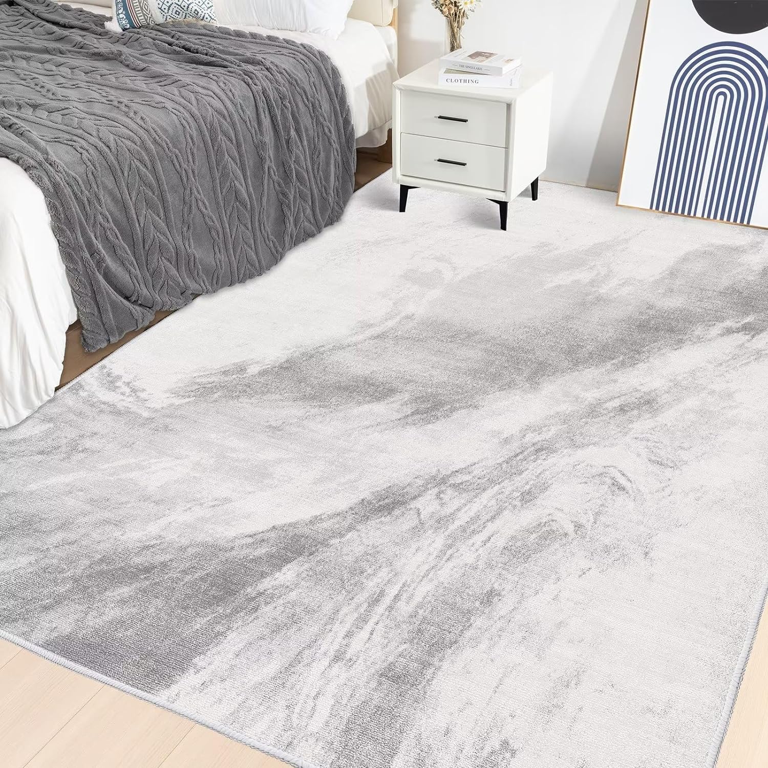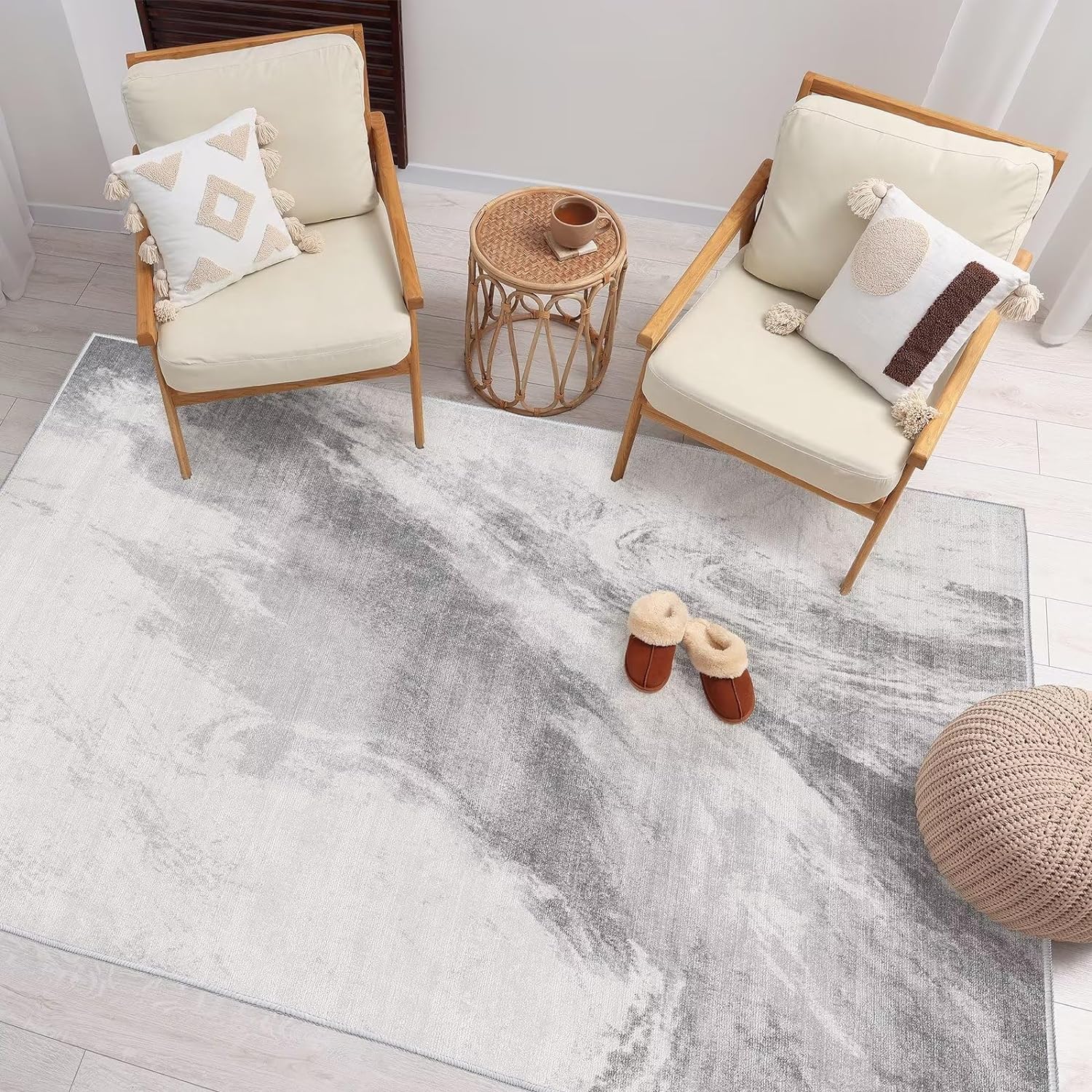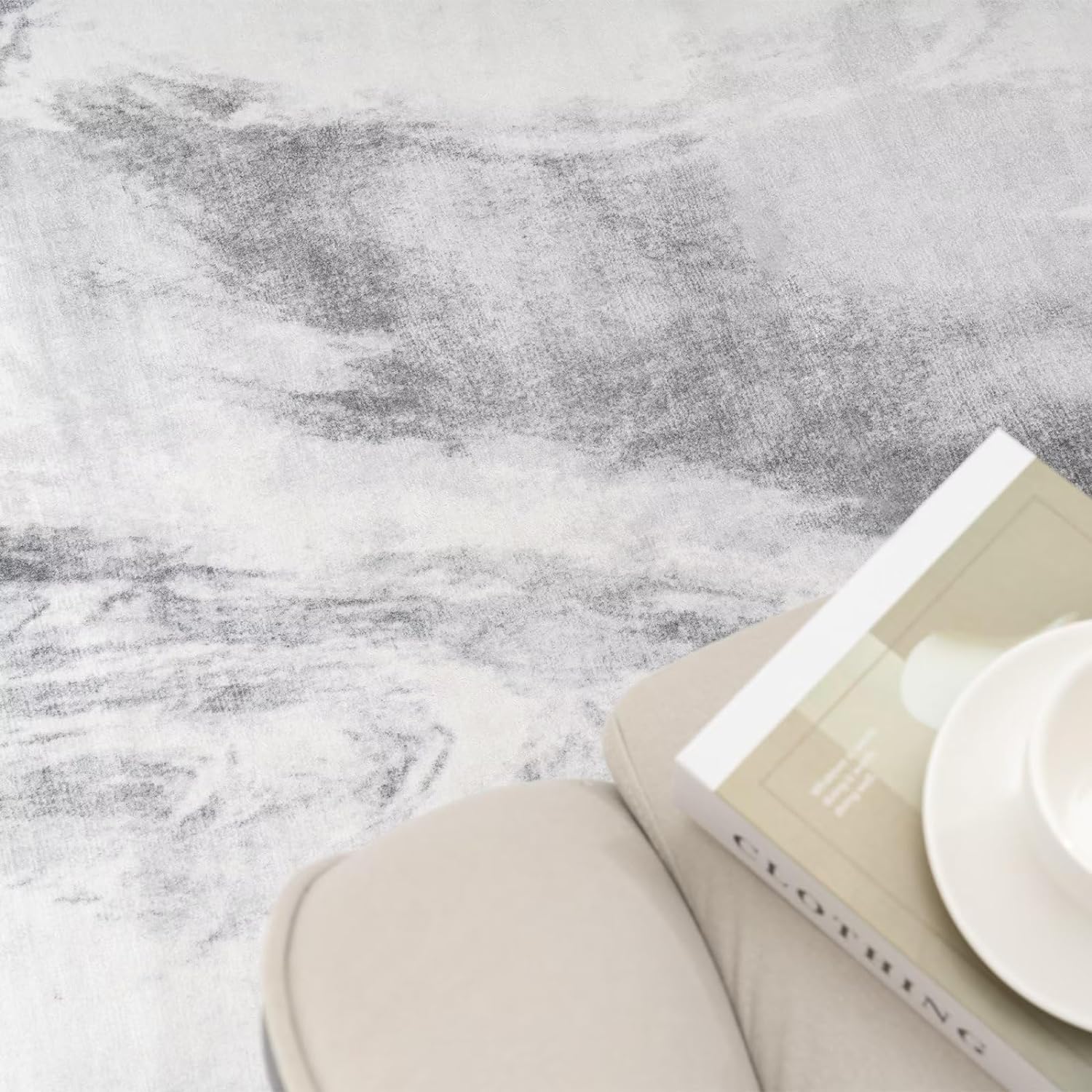 • Grey white Washable Abstract Area Rug - Contemporary Style for Living Room