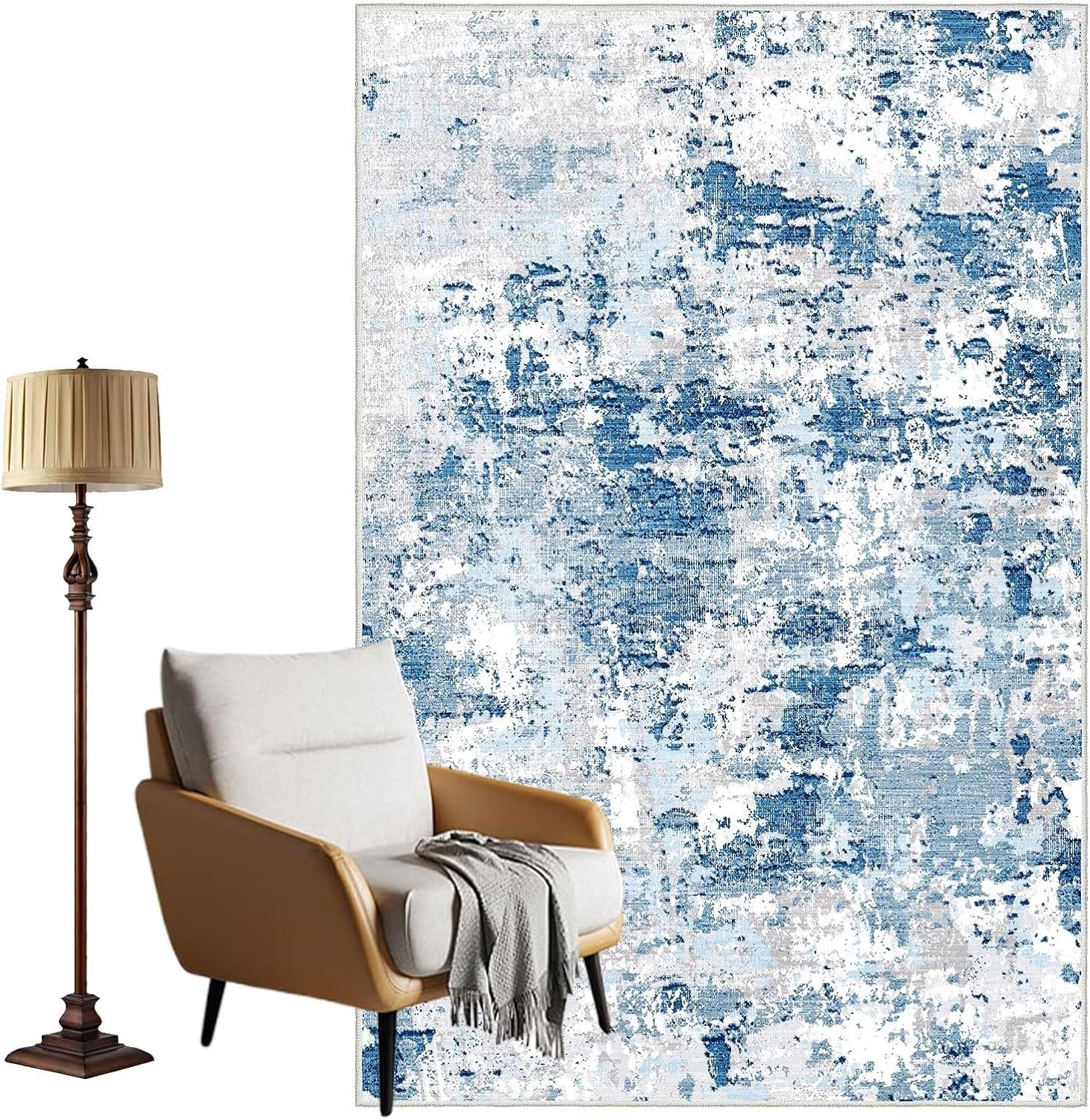 Blue Washable Abstract Area Rug - Contemporary Style for Living Room