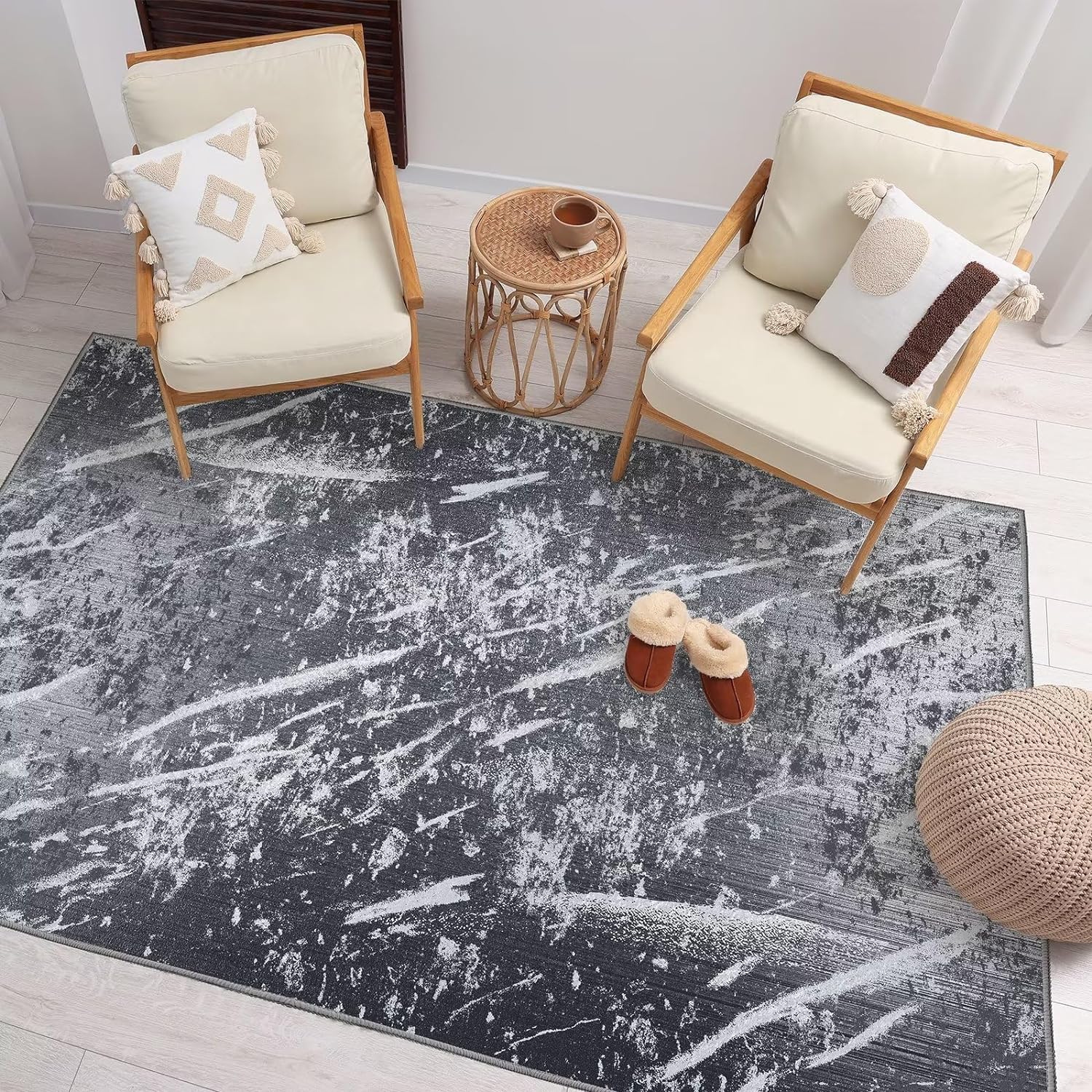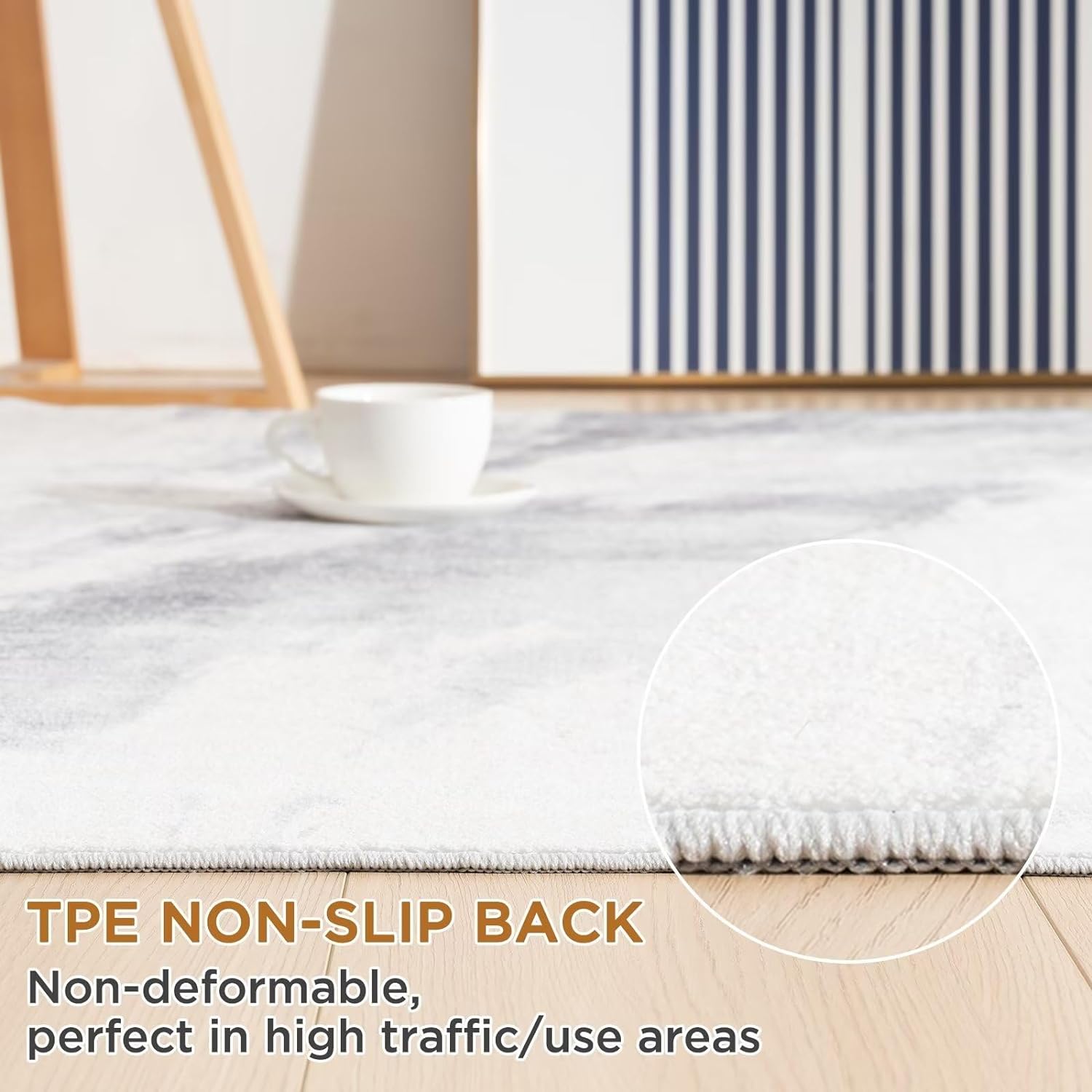 Grey white Washable Abstract Area Rug - Contemporary Style for Living Room
